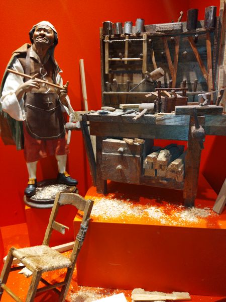 Por lo que respecta a la confección de las figuras -todas ellas denominadas genéricamente pastori-, cada una cuenta con una cabeza – o testina– de terracota policromada al óleo y ojos de cristal, cuerpo de alambre y estopa, manos y pies de madera también pintados, así como con indumentaria de tela y complementos. Los animales se realizan en madera tallada o en terracota policromada, con algunos detalles plasmados en plomo -cornamentas y algunas patas- o en cristal -ojos-. Por último, para los objetos –finimenti– suelen utilizarse los mismos materiales que se emplean en la realidad (madera, hueso, metal, barro, tela, cáñamo, mimbre, cristal, papel, cuero, plata…), salvo en el caso de los alimentos, cuyo sorprendente realismo se consigue modelando cera precoloreada.