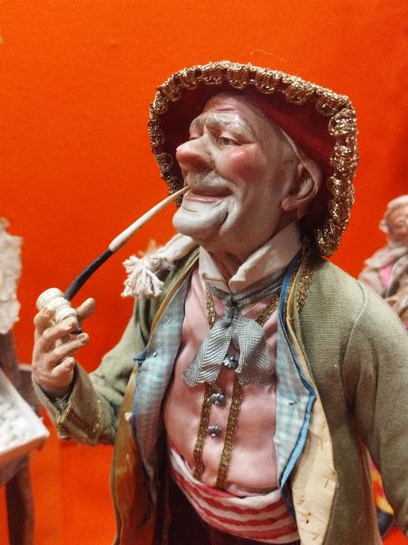 Noble fumando. El cuidado en las fisonomías, la plasmación psicológica de los gestos o la minuciosidad son característicos del belén napolitano.