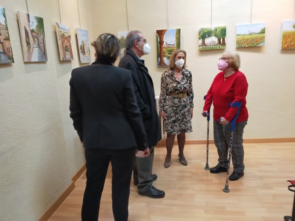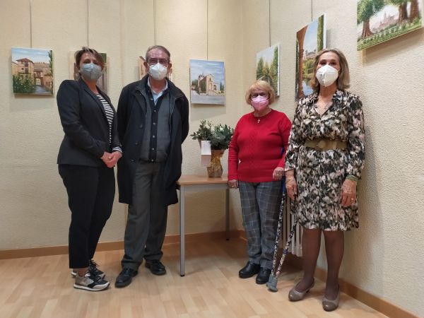Momento de la inauguración de la Exposición, en el Centro social Corpus, con la presencia de Carmen García (artista y representante de ArteFrater), representantes de AFA Segovia (Anabel de Pedro e Isabel Miranda, presidenta) y Rafael Ruiz (Director de Fundación Caja Segovia).