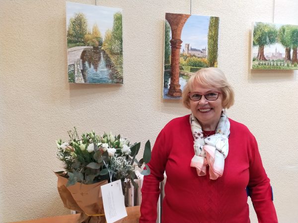 Carmen se inicia en el dibujo desde pequeña y continúa su trayectoria por el instituto, magisterio, el antiguo caserón de Bellas Artes hasta llegar a la Casa de los Picos. Después de aprender la base y distintas técnicas, se encuentra más cómoda pintando con espátula. Juega con esta herramienta y el óleo consiguiendo una pintura realista e impresionista, principalmente, en los paisajes. Su espíritu altruista y su gran corazón hacen que, además de una gran persona, sea una gran artista. Con esta ya son cuatro las exposiciones benéficas que ha realizado en el centro Corpus, a favor de Manos Unidas, FRATER y Cáritas, en esta ocasión expone sus últimas obras, realizadas, expresamente, para recaudar fondos a beneficio de AFA Segovia. Destacamos la colaboracion del grupo de Arte Frater de Segovia que aportan su granito de arena con la elaboración de lindos “mandalas” pintados para tan buena causa.