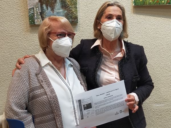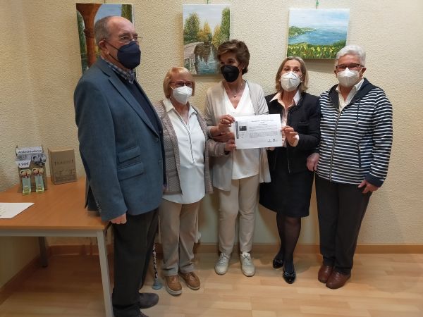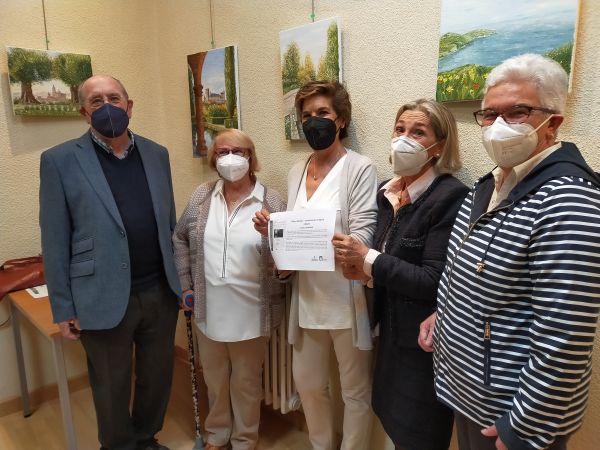 Segovia, 27 de mayo de 2021, Carmen García Moreno y el grupo de Arte Frater, hacen entrega de la recaudación de 2.383,20€, por la venta de las obras y otras donaciones, a la Asociación de Familiares y Enfermos de Alzhéimer de Segovia. Queda pendiente de entrega 698,80 €, a la recogida de obras.