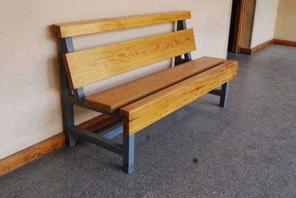 Banco de madera y metal color gris