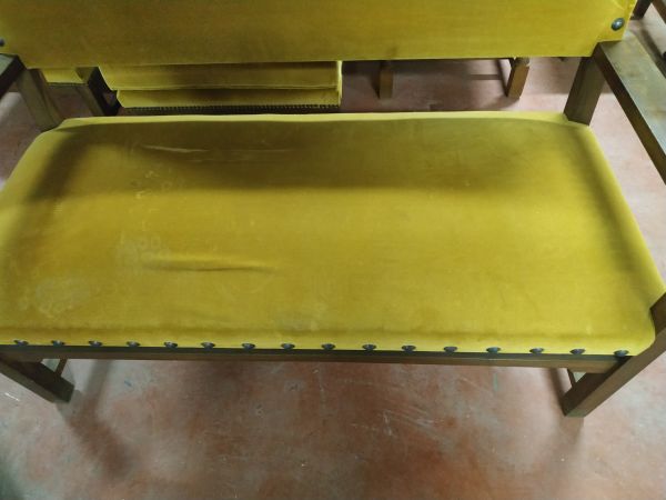 Banco tapizado en terciopelo dorado cantidad