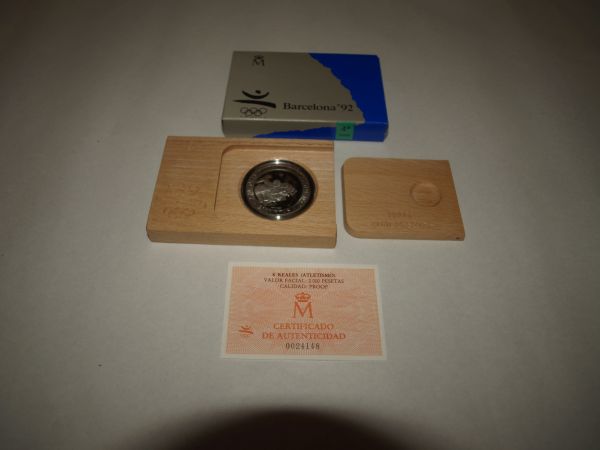 Barcelona 92. 8 reales. Atletismo”. 1 estuche con 1 moneda de plata, 2.000 ptas. Calidad Proof. Serie 4ª