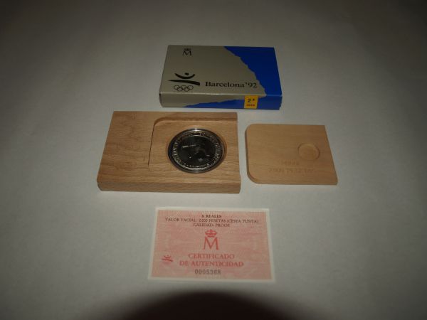 Barcelona 92. Cesta punta. 1 estuche con 1 moneda de plata, 8 reales, 2.000 ptas. Calidad Proof. 2ª Serie