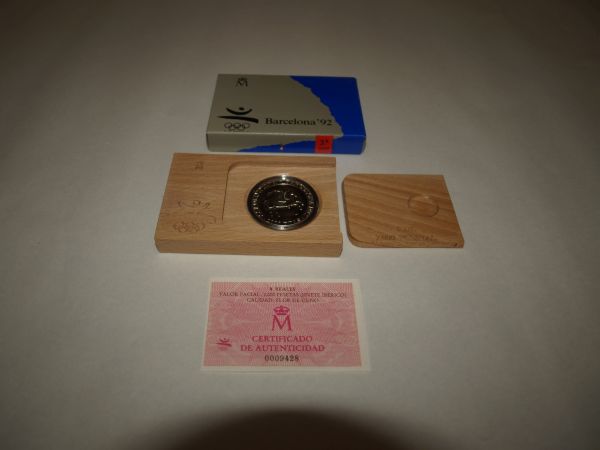 Barcelona 92. Jinete ibérico. 1 estuche con 1 moneda de plata, 8 reales, 2.000 ptas. Calidad FDC. Serie 3ª