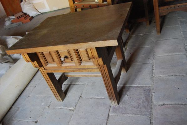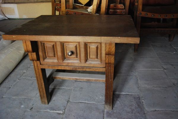 Mesa baja rectangular en estilo castellano con un cajón de cuarterones cantidad