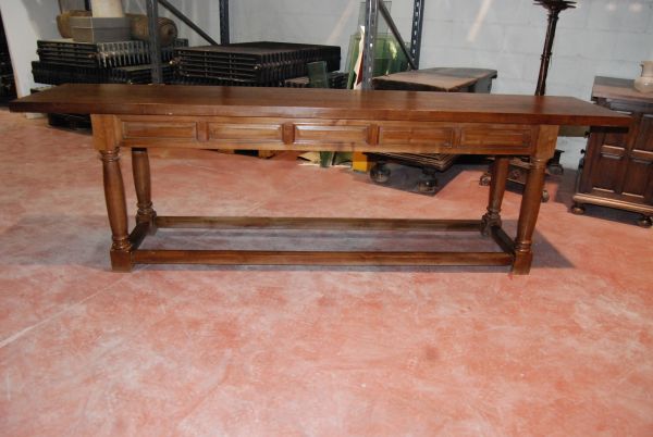 Mesa de estilo castellano con frentes de cuarterones y patas de balaustre cantidad