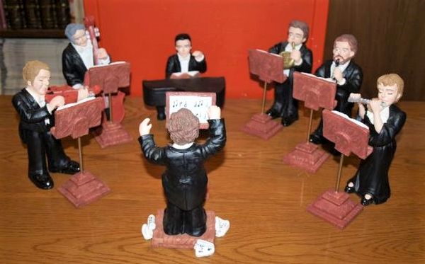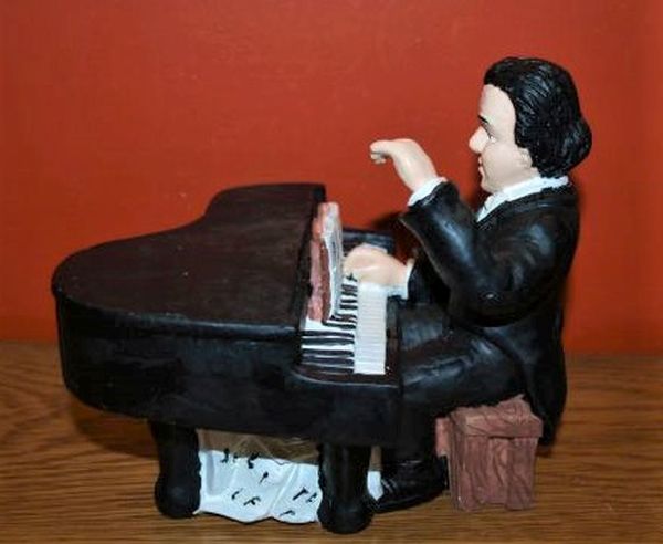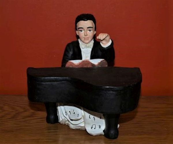 Autor desconocido Esculturas policromadas en resina. Medidas del pianista: 14,5 x 15,5 x 17 cm.. 18,5 x 9 x 9 cm cm. . . NUEVO. Referencia: 11407