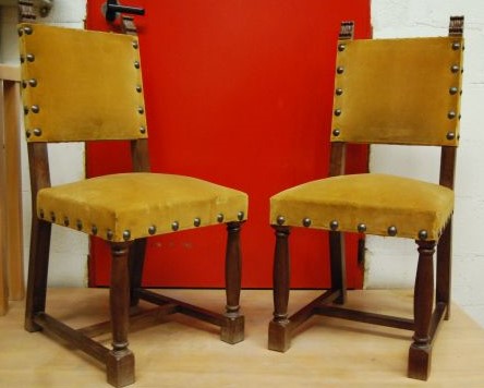Pareja de sillas de madera tapizadas en terciopelo dorado