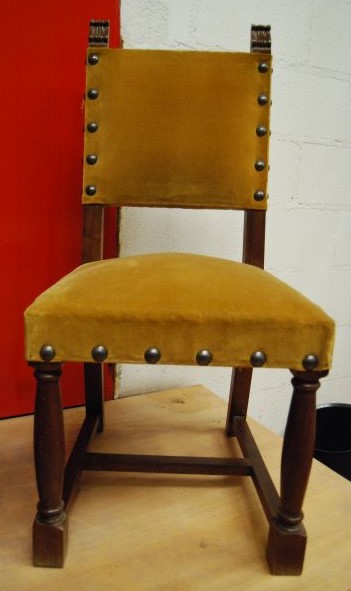 Pareja de sillas de madera tapizadas en terciopelo dorado cantidad