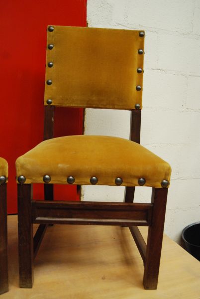 Pareja de sillas de madera tapizadas en terciopelo dorado cantidad