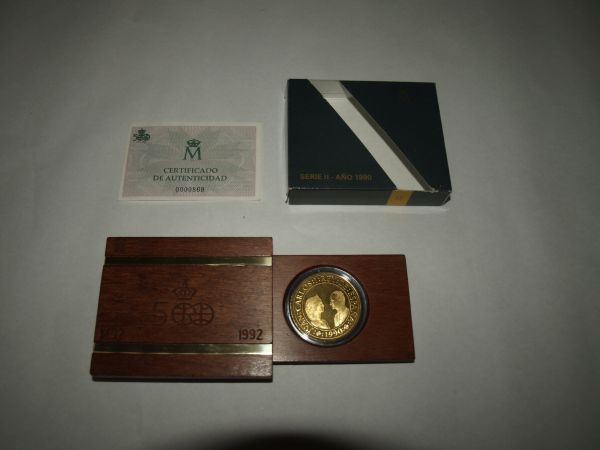 Quinto Centenario. 1 estuche con 1 moneda de oro de 80.000 ptas. Calidad Proof. Serie II, 1990.