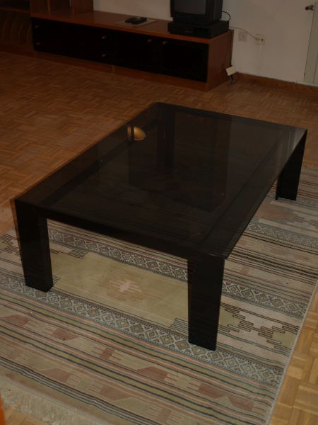 Mesa baja rectangular en estilo castellano con un cajón de cuarterones