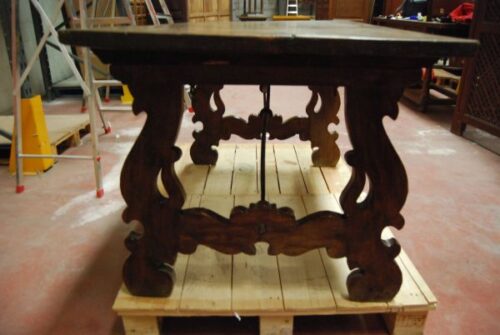 Mesa de estilo castellano en madera con dos cajones moldurados