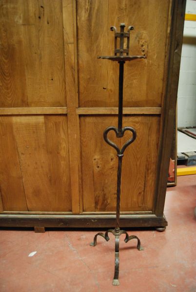 Candelero de forja de estilo gótico adornado con nudo segoviano y pie triangular